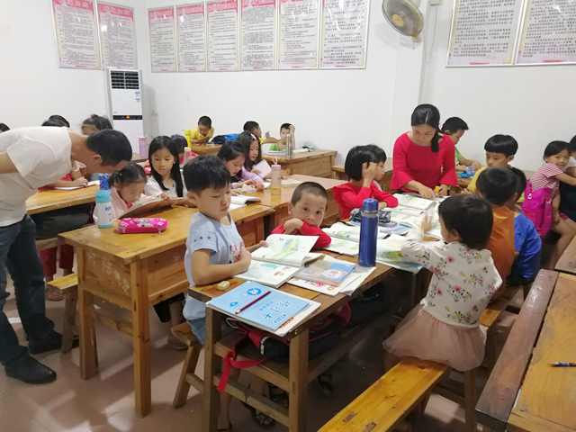张小苗则毛遂自荐成为北中村的辅导老师。她曾在博罗县一所民办学校教了8年小学数学,前两年为了孩子回到村里。“我有教学经验,晚上也腾得出时间,就想尝试一下。”北中小学提供场地,她与语文代课教师佘琼华搭档辅导学生。“除了部分居住较远的,很多家长都愿意送孩子过来。”