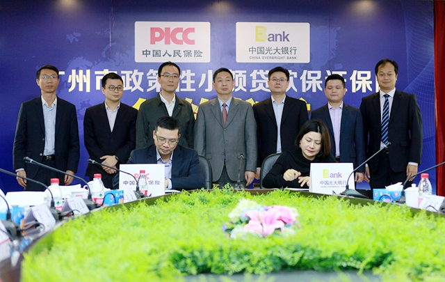 3月12日,人保财险广州市分公司与光大银行广州分行举行了“广州市政策性小额贷款保证保险业务”合作签约仪式,联合开展小额贷款保证保险业务。这是广州市新的政策性小额贷款保证保险管理办法出台后首个实施项目落地。广州市地方金融监督管理局聂林坤副局长出席了本次活动。