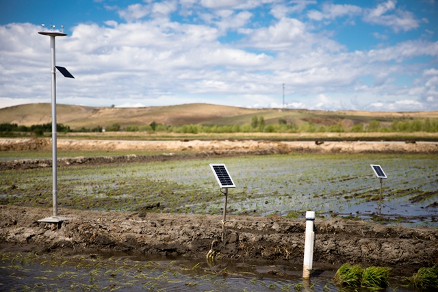 在位于杜尔基镇的兴安盟大米标准示范基地,万亩稻田一望无际,随处可见竖立在田间地头的电子设备,那是用于田间摄像、温度湿度监控、土壤监控等的数字化设备。这是阿里巴巴在国内打造的首个数字农场。