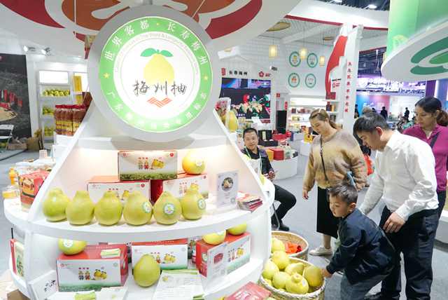“梅州柚风味很独特,我要带一个回去。”同为参展商的黄先生被梅州柚吸引,在梅州展区咨询购买。梅县金柚种植已有上百年历史,近年来,金柚产业由过去基地零星分散、商品规模小逐渐向产业化、规模化、专业化发展,成为当地优势特色产业,成长为全国最大金柚商品基地、集散地。2018年生产规模24.35万亩,产值23.82亿元,每亩利润超5000元。
