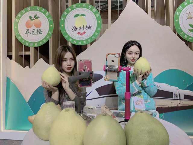 在现场,漂亮的网红小姐姐直播逛展区、吃柚子,向粉丝们介绍梅州柚的种植历史,“梅州独特的地理位置和得天独厚的自然环境,使得梅州产出的柚子肉质柔嫩,皮薄汁多。我正在吃的这是梅县金柚,它先后获评“中华名果”“岭南十大佳果”等荣誉称号,并获得地理标志商标认证登记。”