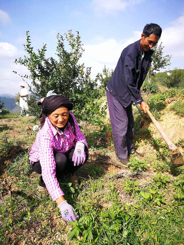 “首先,鼓动贫困户参与种树,参与者每天发60元。”彭士华说,“等果树种下后,再请贫困户参与管护,目前零工每天发80元。”
