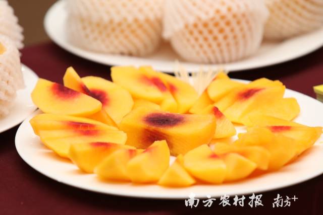 湖南水云峰农业科技有限公司总经理刘海军推介时表示,基地从种植到采收做全方位管理,每年的黄桃销量十分可观,不仅畅销国内,还出口到台湾、新加坡和韩国等地。