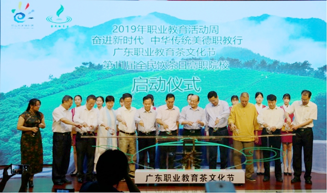 5月11日,正值2019年职业教育活动周,广东职教茶文化节暨全民饮茶日高职活动在广东科贸职业学院启动,来自广东省教育厅、农业农村厅、省供销合作联社、省教育研究院和广东开放大学、广东工程职业技术学院、广东食品药品职业学院、广东机电职业技术学院等近百家机关、事业单位、高校、行业协会和企业参加了本次活动。茶叶这一片神奇的树叶吸引了4000多人到现场,共诉茶文化传承新故事。
