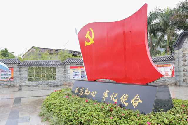 环村道路边的小广场上,金色的党徽、入党誓词及红色的“党旗”格外醒目,上面鲜明地标注着“不忘初心、牢记使命”。这里是良洞村党员们开展党建学习的地方——良洞村党建文化园。“它将‘党建+传统+本土’三种文化融于一体,既为村民提供娱乐放松的好去处,也能让党员群众在生活、休闲之余潜移默化地接受党性教育。”秦木养说。
