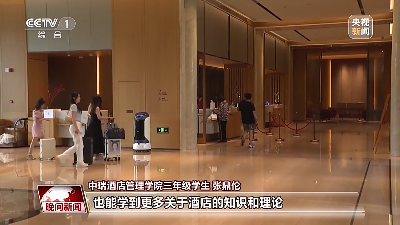 中瑞酒店管理学院三年级学生 张鼎伦:我们大二和大三也有两次(校外)实习,在实习的过程中也能学到更多关于酒店的知识和理论。