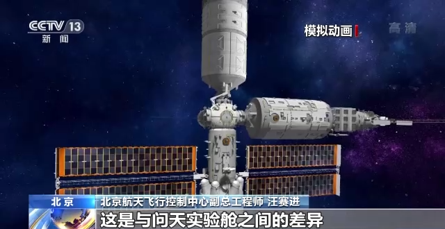 北京航天飞行控制中心副总工程师 汪赛进:梦天实验舱与空间站组合体实施交会对接以后,紧接着实施梦天实验舱的转位工作,这是与问天实验舱之间的差异。转位之后才进行并网的操作控制。另外建立载人的环境,然后我们的航天员才进驻梦天实验舱。