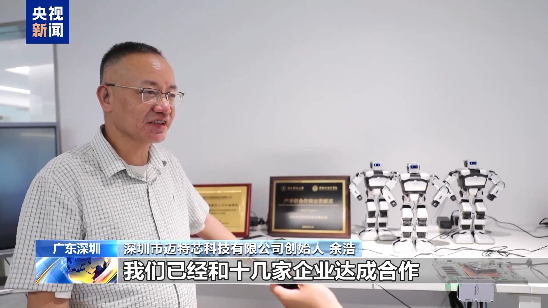 深圳市迈特芯科技有限公司创始人 余浩:5公里之内,上游有高端的高校实验室提供相关的技术支持,下游各类的机器人,我们已经和十几家企业达成合作。