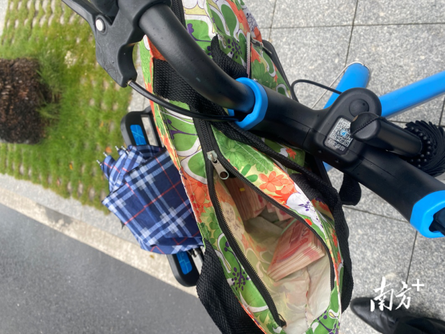 “这些钱看上去有些旧,我猜应该是失主四处筹集到的”。施存锋告诉南方+记者,当天下午他们在香洲区第十七小学附近吃完午饭,准备联系客户看房,正好看到学校门口旁30米处停着一辆共享单车,他们本想扫码骑车,却发现单车前车篮里有一个橙绿相间的编织袋。四下无人,共享单车处于使用结束的关锁状态,两人心想编织袋应该是被落下了。
