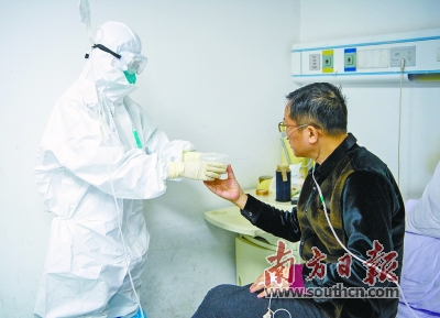 “广东来的医生护士对待病人很细致,像郭亚兵主任就多次给我讲解病情,给我信心。”刘老先生提到的郭亚兵,是第一批广东医疗队领队。作为曾经在北京小汤山奋战过的感染科专家,他再次冲在一线,查房、诊疗,很多患者见到他便安下心来。