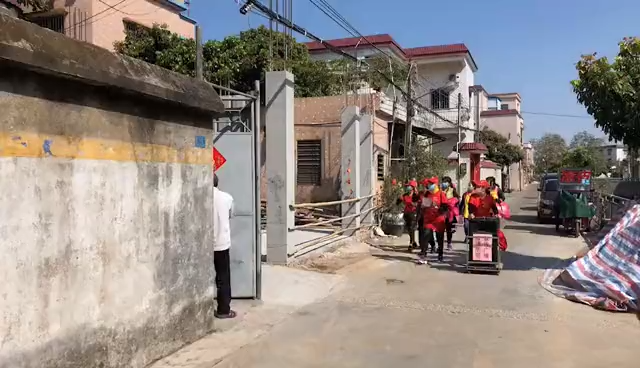 广场舞阿姨们在休息时间常常携带音箱,播放音乐,活跃在各大公园和空旷的公共场所。自疫情发生后,阿姨们没法在外跳广场舞。于是,东凤镇穗成村的朝扬健身队,在村妇联的组织联动下,组织了一支近10人的宣传队伍。她们利用平时跳舞的音箱,每天在村内的大街小巷流动式播放进行宣传防控知识,到出租屋派宣传单张。