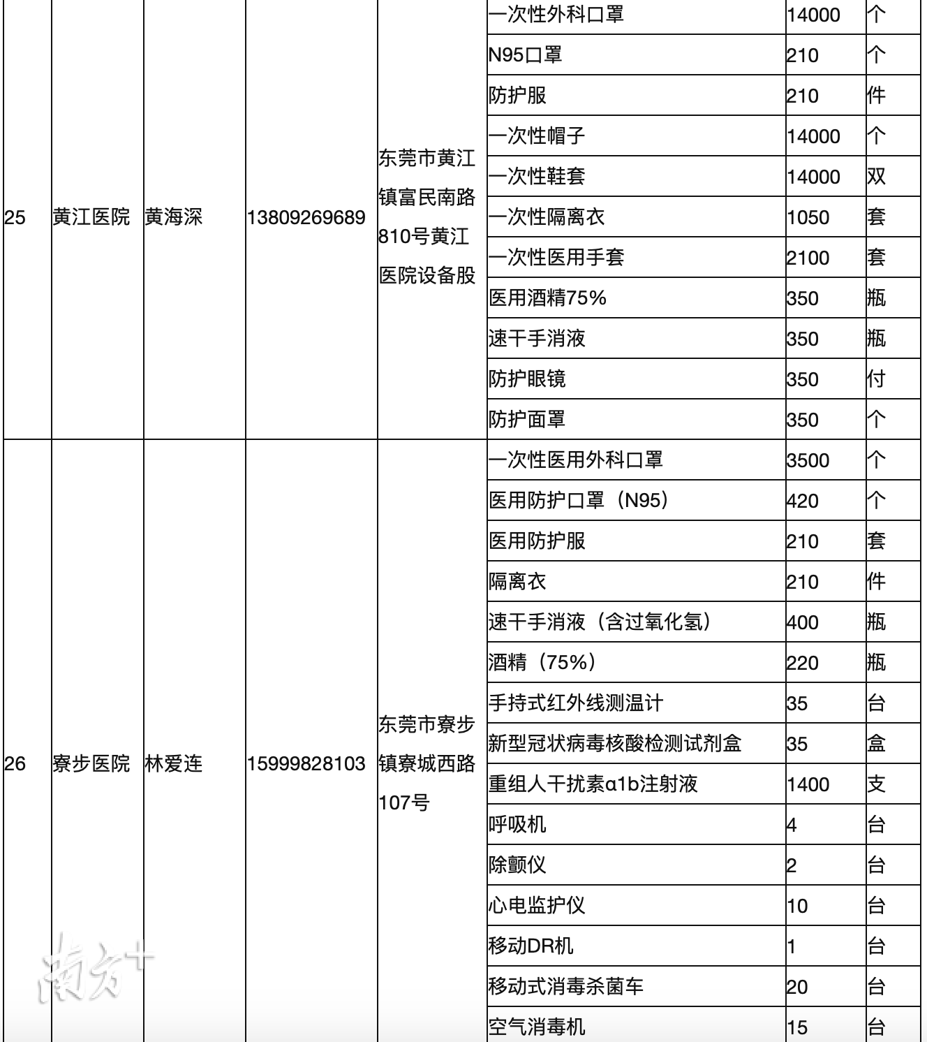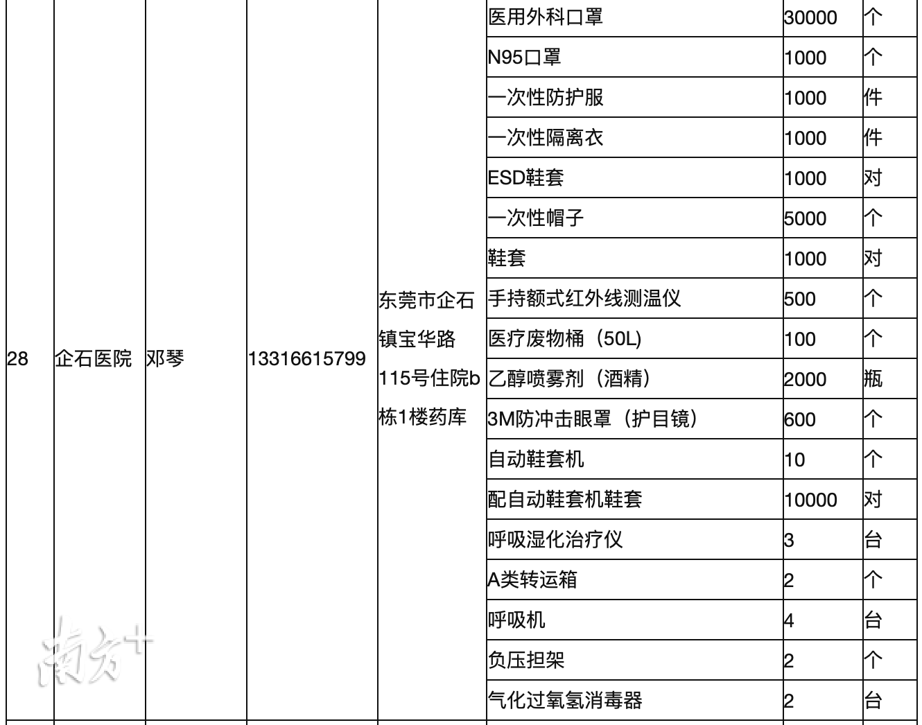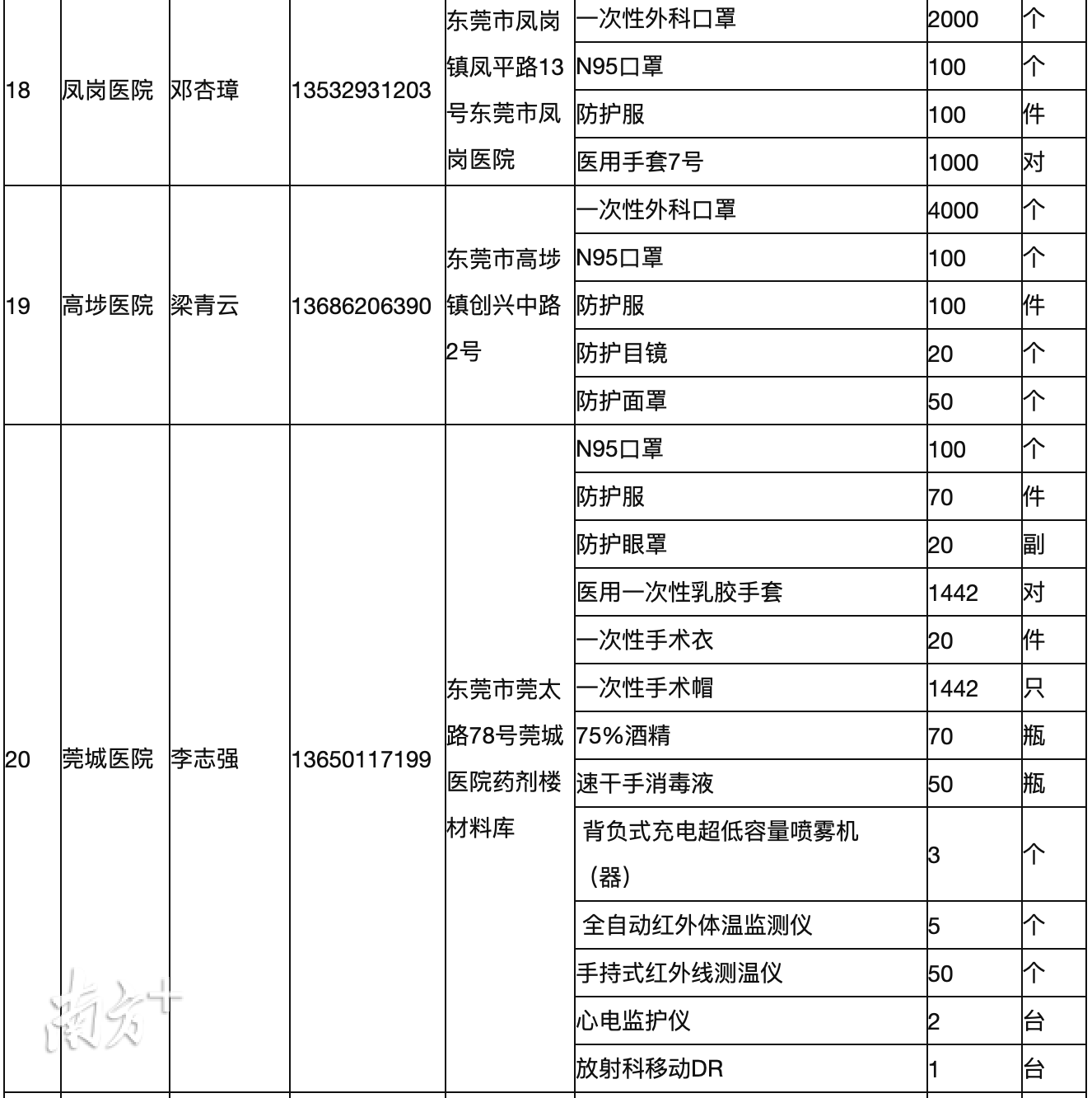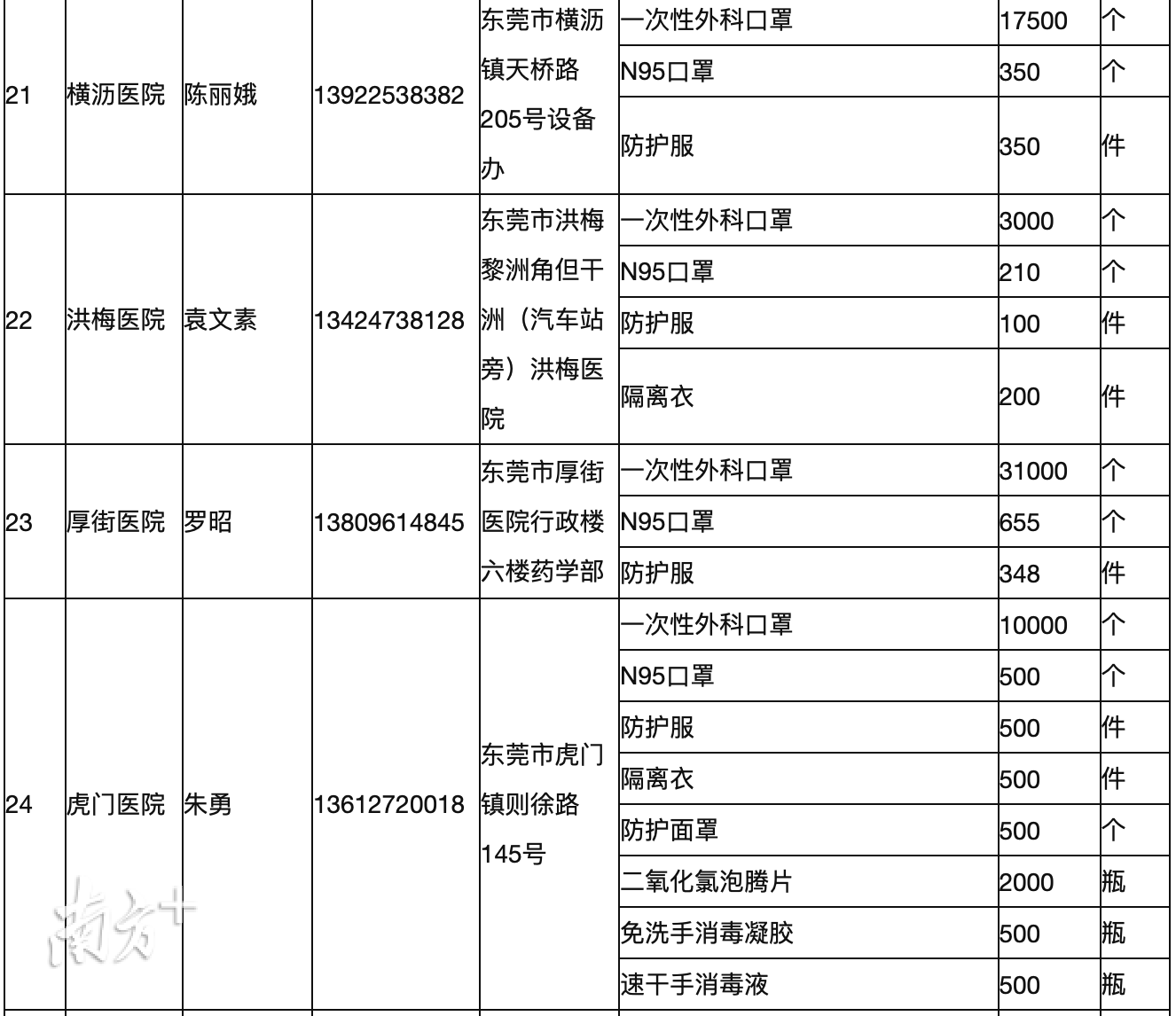 “东莞市人民医院需要医用外科口罩61600个、N95口罩17500个、一次性医用连体防护服3500件、一次性工作帽(无纺帽)30800个,东莞市第九人民医院需要一次性外科口罩5000只、N95口罩1000只、防护服7000件,……”随着疫情发展,东莞医疗物资紧缺,2月9日,东莞市红十字会公布了全市38家定点收治医院和发热门诊需求的物资,社会各界可通过直接联系医院或通过红十字会两种方式捐赠。