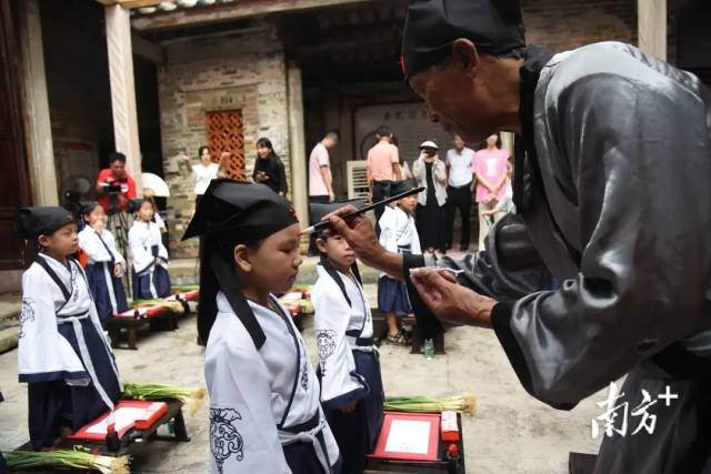 正衣冠、点朱砂、写“人”字……去年8月,阳春市在岗美镇隆岗村举行“李惟扬文化节之开笔礼”。上百名学童在启蒙老师的带领下,感受人生中第一次成长礼,传承好家风、好家训,不断弘扬中华优秀传统文化。