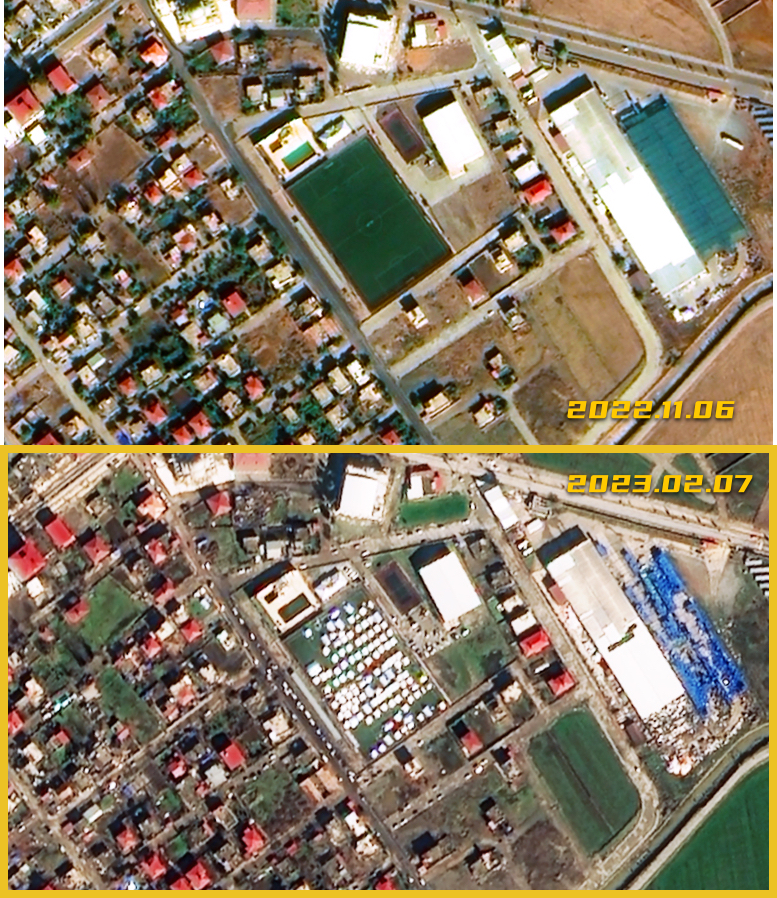 地震发生后,我国长光卫星“吉林一号”系列卫星第一时间拍摄到土耳其地震现场。7日拍摄的卫星影像显示,土耳其多地受灾严重,大量房屋受损,足球场上搭满帐篷,道路上也挤满车辆。