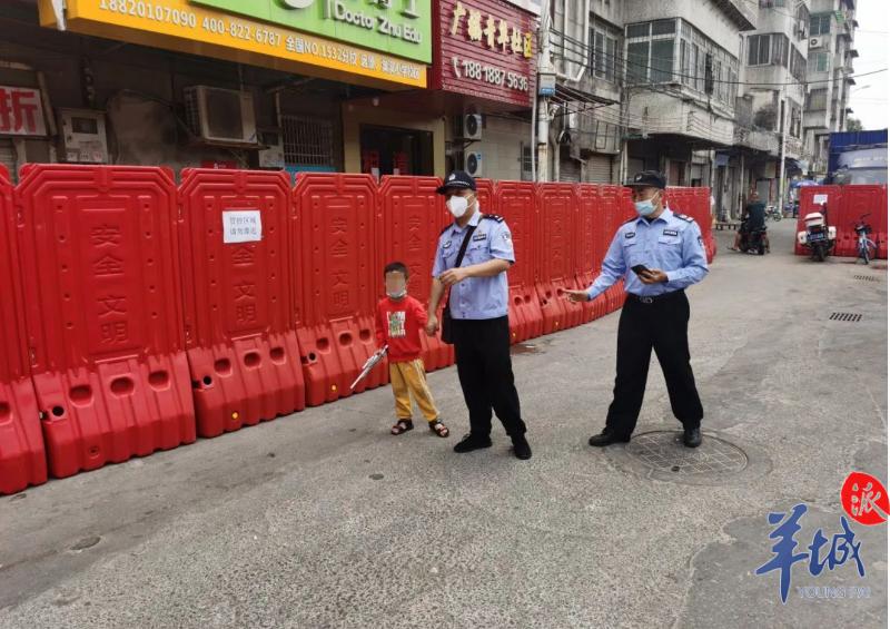 4月12日11时30许,一名年幼的男童在白云区棠溪南天西街38号封控点附近哭着找妈妈。越秀区公安分局网警大队支援白云区棠景派出所民警梁红涛见状,第一时间把孩子保护在自己身边。