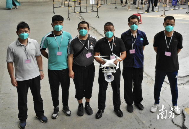 在“扫楼”动员居民无遗漏参加全员核酸的过程中。桂花突击队队长、学校工会主席李志波发现城中村楼房密集,街巷交错,对于疫情防控通知传达不及时,给疫情防控的后续落实造成了困难,主动提出利用自己的专业特长,借助无人机被关注高、移动速度快、覆盖区域广、空中广播宣传力强的优势,开展“非接触式”疫情防控宣传。于是,这位三届国家级航模冠军、航空模型国家级裁判带领徒弟和同事马上按要求录好宣传广播,组装好无人机,起飞!当无人机高难度地在城中村楼房高处、街巷小道上空等重点区域大范围盘旋往返时,当无人机载广播不断地喊话:“温馨提示,请管控区广大居民朋友戴好口罩,遵守秩序,自觉排队,保持2米安全距离……”时,高科技为疫情防控提速增效,一道亮丽的“智慧防控”风景线亮相于人前。仅4月11日,李志波遥控的无人机累计巡航100余次,飞行10余小时,通过空中巡查,及时对核酸检测现场秩序、安全距离、未戴口罩等情况进行空中喊话提醒、劝诫引导,有效提高了现场防疫工作的安全性和宣传效率。