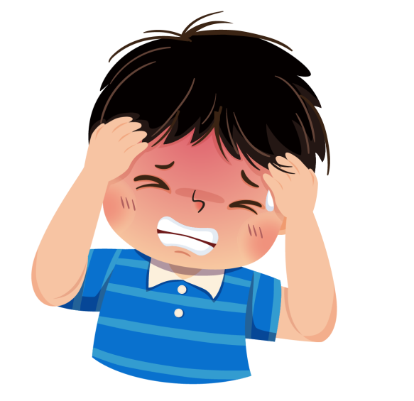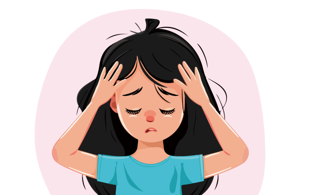 偏头痛:一种反复发作、持续几小时甚至几天的“跳动样”头痛,常出现在前额、太阳穴或头的一侧,常伴恶心、怕光或怕声音,疼痛可能让孩子难以忍受,通常只有在安静环境中休息才能缓解。
