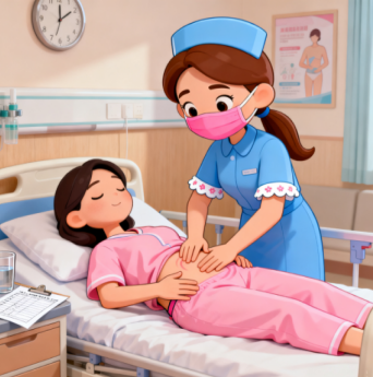 第一步是“子宫底按摩”,护士用手掌在小腹子宫底位置(摸得到硬疙瘩的地方),顺时针轻柔按压、环形按摩,能直接刺激子宫收缩,促进恶露排出;