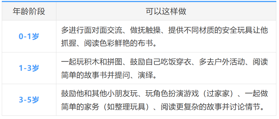 ►养育重点:在爱和安全的基础上,加入更多游戏、学习和社交刺激。