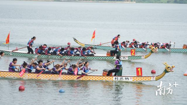 5日中午,首日赛事金牌全部诞生。广东代表队勇夺女子组(12人龙舟)、男子组(22人龙舟)、混合组(22人龙舟)100米直道赛共3枚金牌。