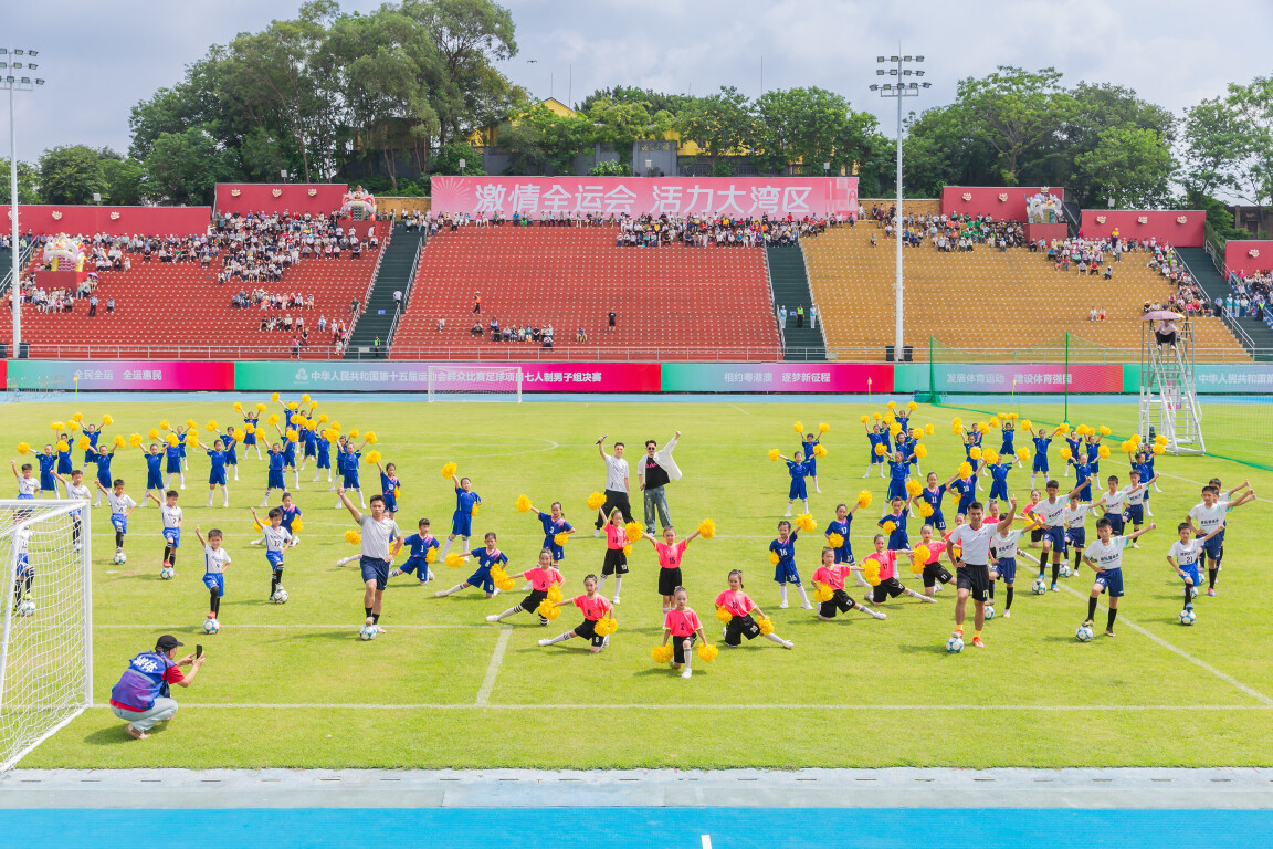 5月23日上午,第十五届全国运动会群众赛事活动足球(七人制男子组)决赛在广东省佛山市三水区云秀山体育场和健力宝足球青训中心同时打响。
