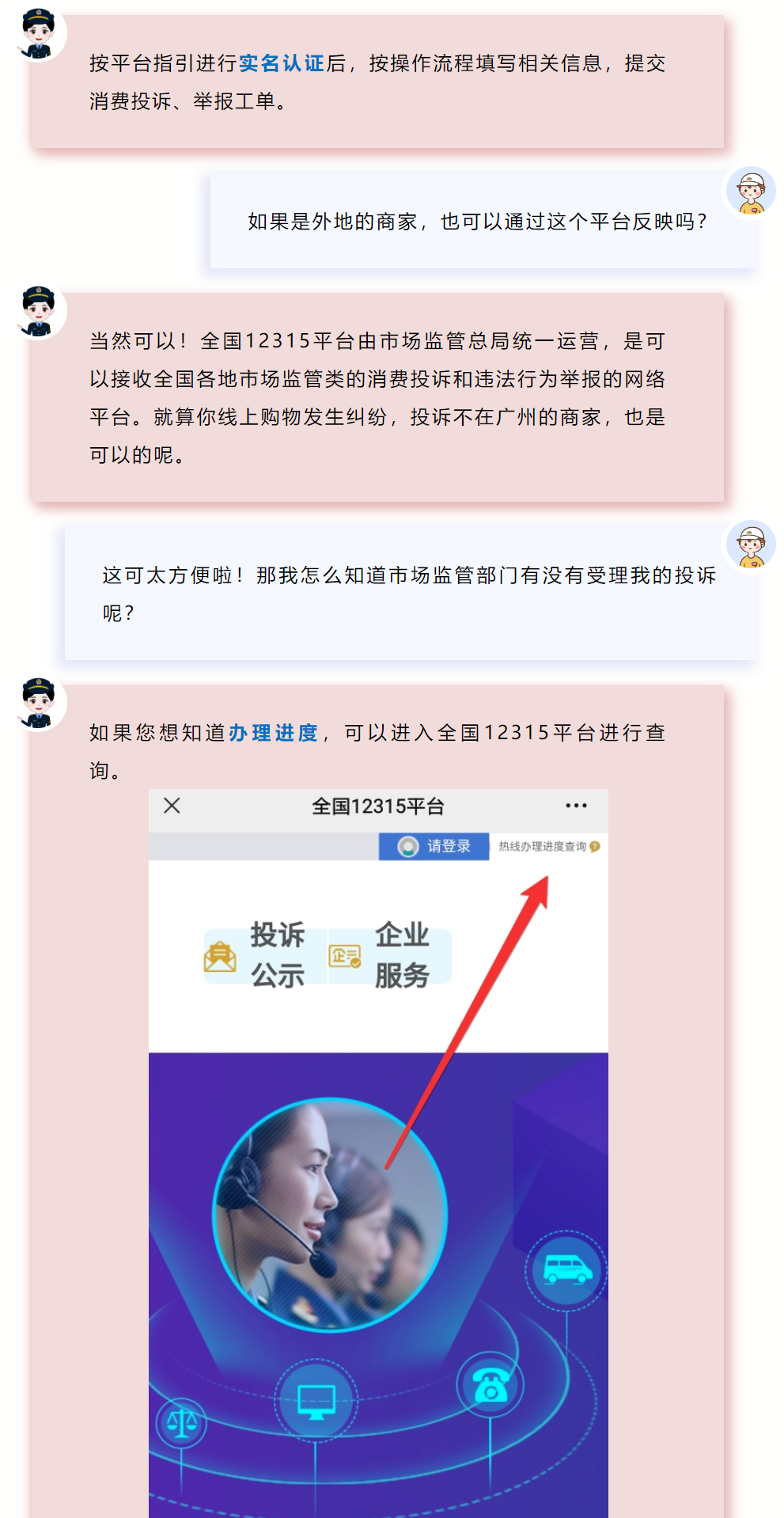 “全国12315平台”是市场监管部门7×24小时的互联网投诉举报平台,同时还有微信小程序,方便消费者随时随地登记投诉举报内容。