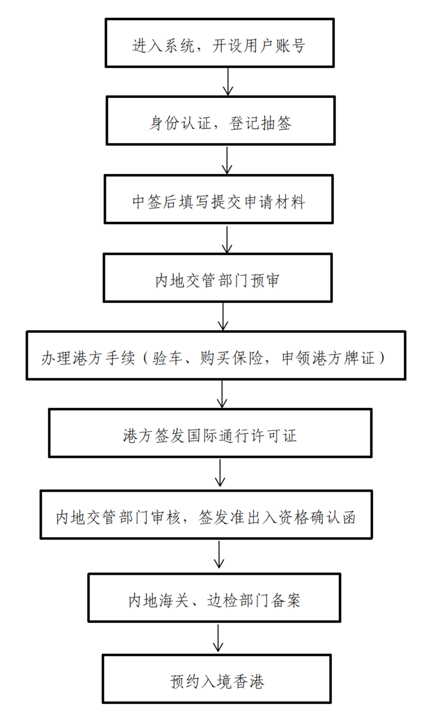 2.提交申请,内地审核。申请人中签后提交申请材料,内地有关部门受理并进行预审核,相关数据通过网络传送给香港运输署。