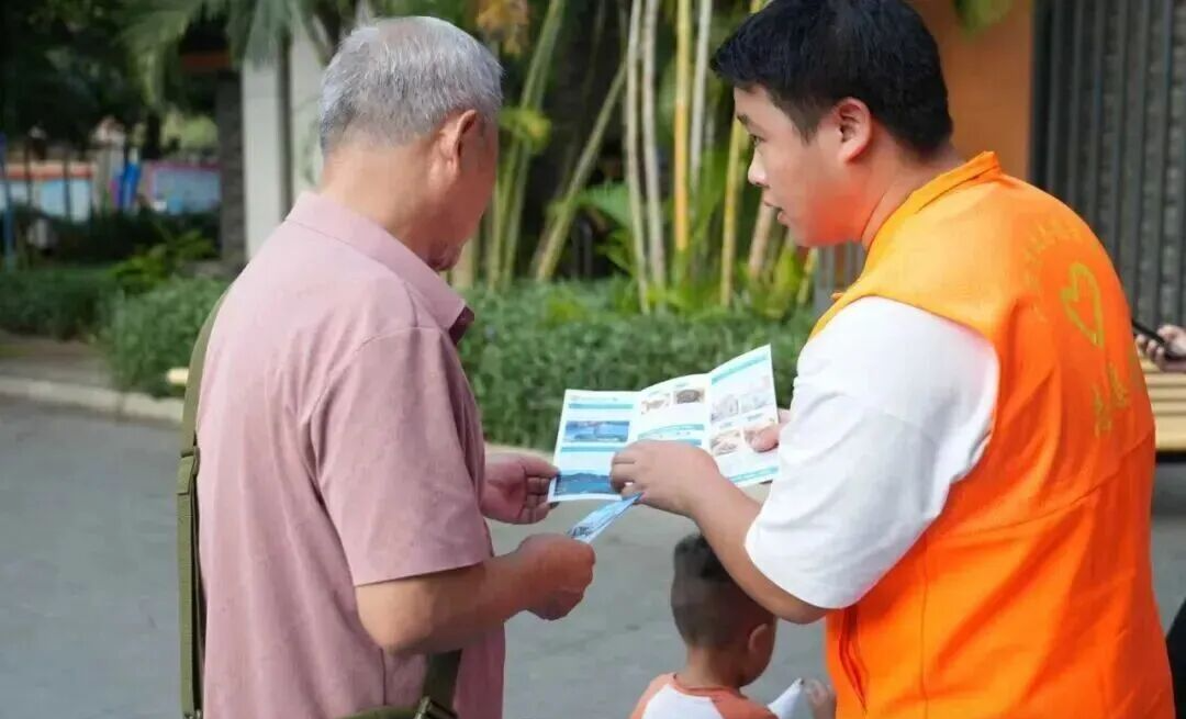 ▲志愿者向过往市民推荐大湾区美景美食。图源:广东交通集团