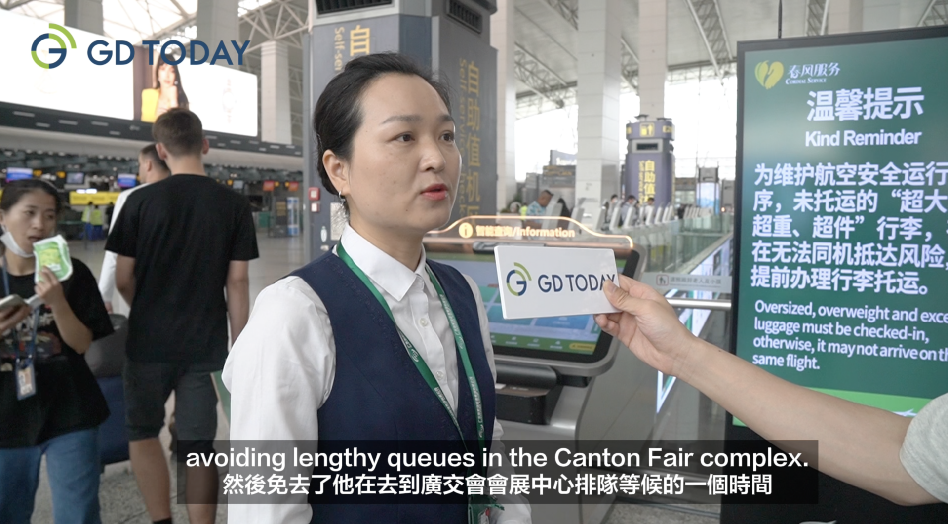 据悉,广州白云国际机场为迎接来自世界各地的国际参会者,推出了多项便利措施,包括海关通关、免费办证申请和多语言服务等。不少外国客商在接受GDToday记者采访时,纷纷表达了满意,赞扬机场提供便利和高效的服务。
