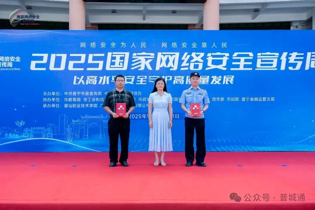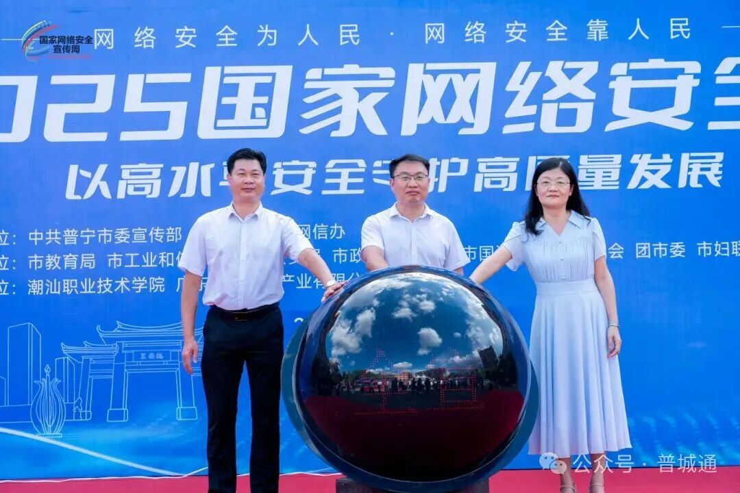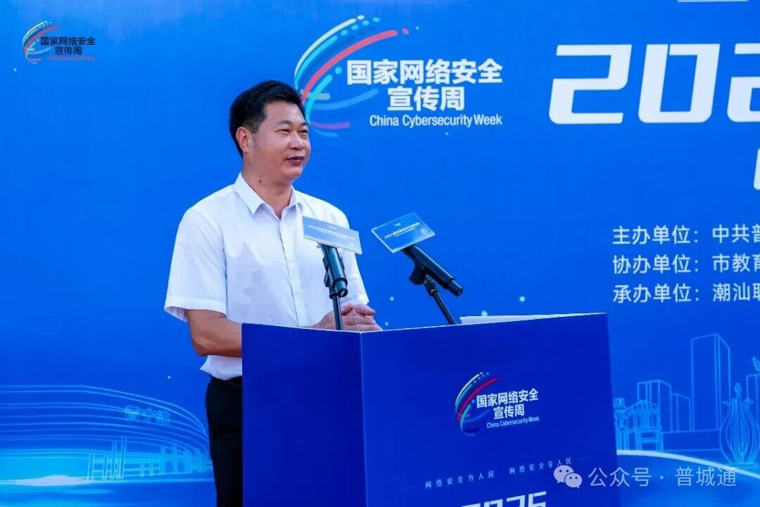 仪式上,市委副书记郝鹏飞、市委网信办负责同志,潮汕学院党委负责同志共同启动2025年普宁市网络安全宣传周。