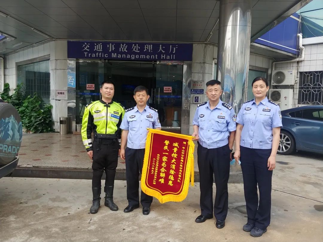 5月26日,协助武汉市公安局东西湖区交警大队,在我镇联丰北路查扣一辆鄂A牌逾期未检验违法货车。5月27日,武汉交警专程到分局交警大队送上一面致谢锦旗。