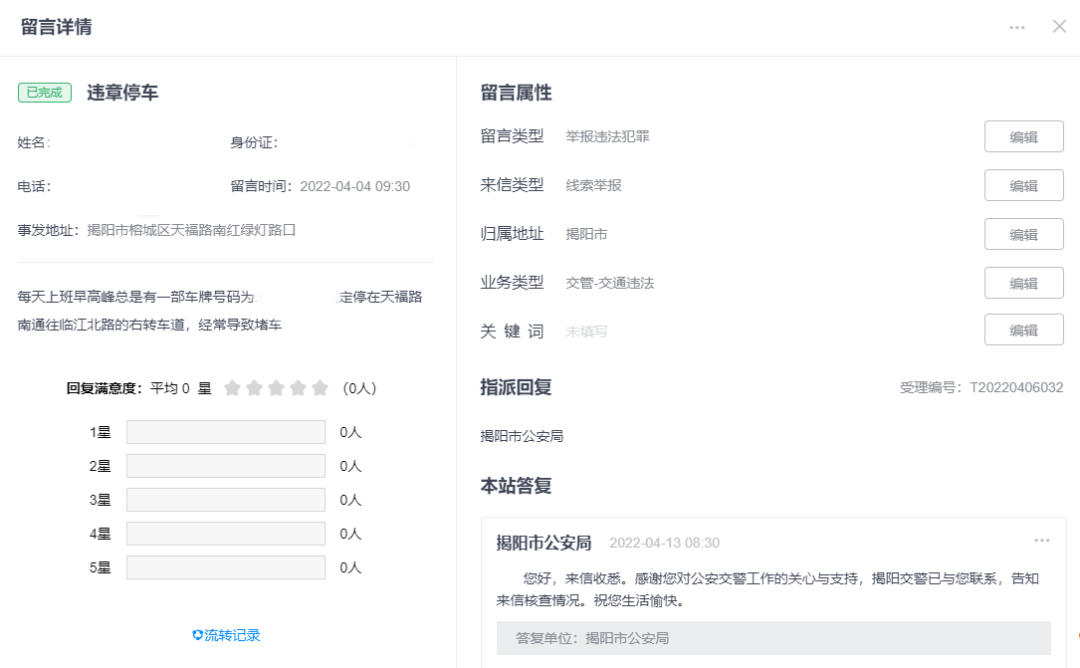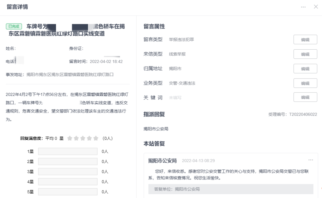近日,揭阳交警对网友在“局长信箱”平台反映的交通违法行为进行逐一整治查处,警民合力共创平安有序的交通环境。
