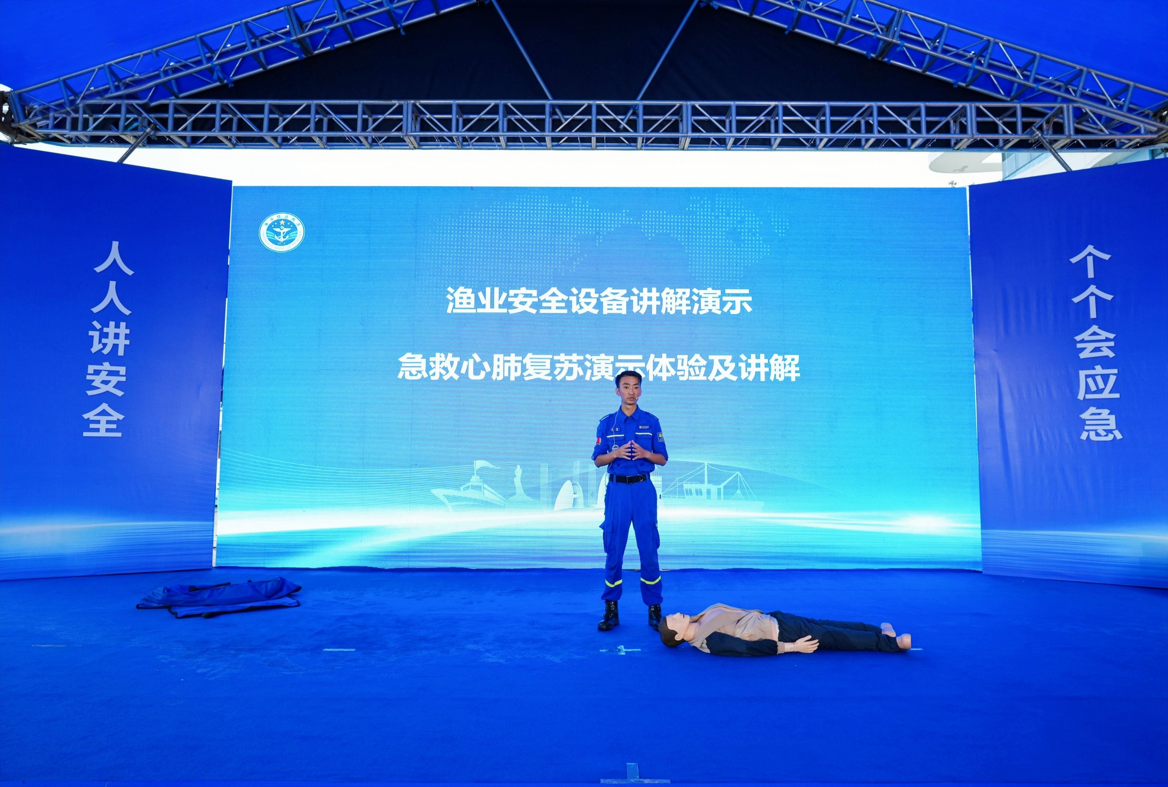 本次活动主要包括海上救生消防应急演练、安全生产普法宣传、救生设备使用演示、安全警示教育、现场安全咨询、安全知识有奖问答等内容。现场海洋综合执法人员向渔民代表赠送400件救生衣、发放宣传资料400余份,接受渔民咨询120余人次。活动还同步在网上直播。