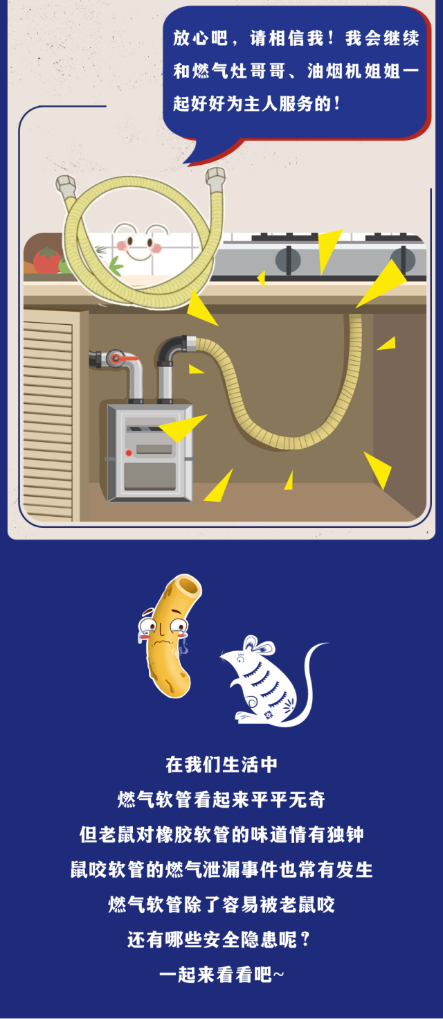 2023年1月7日,浙江杭州久睦苑2幢2单元1002室着火燃爆,抢修人员踏勘发现,连接灶具的橡胶管有破口,疑似被老鼠咬破,初步判断橡胶管破损是造成燃气泄漏的主要原因。