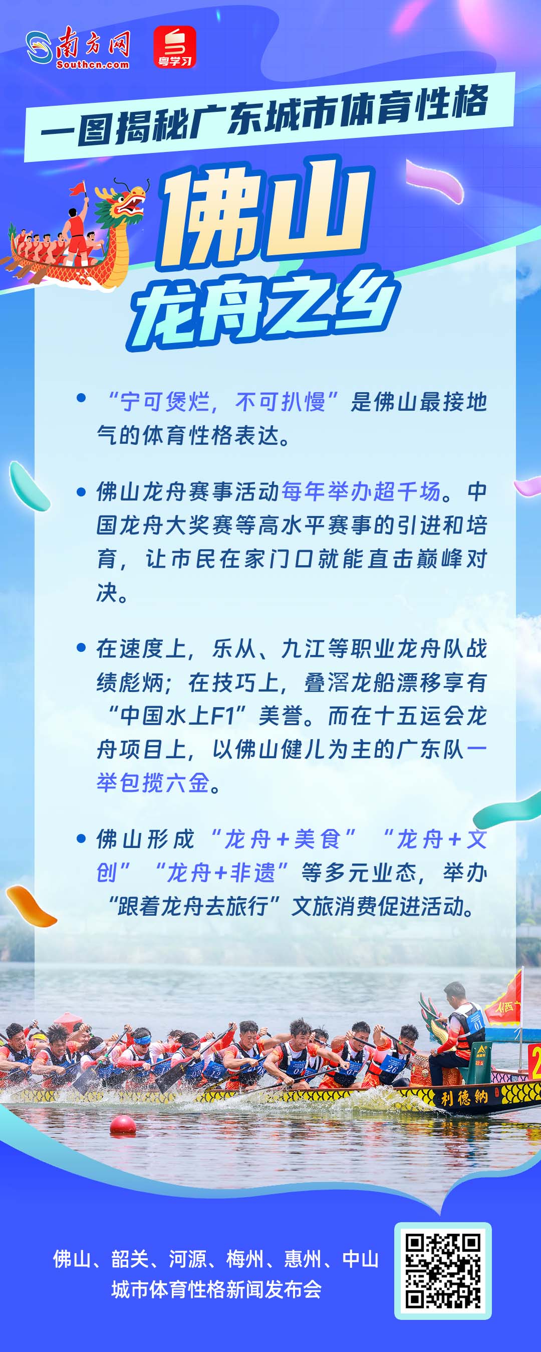 11月16日10时,十五运会广东赛区执委会举行新闻发布会,邀请佛山、韶关、河源、梅州、惠州、中山六市人民政府负责人,共同介绍城市体育性格、赛事运行保障、体育产业等情况。这不仅是一场体育与城市的对话,更是广东践行“办好一次会,提升一座城”理念,展现高质量发展风貌的生动实践。从龙舟竞速到赛艇劈波,从徒步山水到绿茵驰骋,从滑板飞扬到棒球热血——每一座城,都有一种体育精神在脉动;每一种热爱,都在为“活力广东”写下生动注脚。你的家乡,究竟属于哪种“活力派”?让我们通过一组海报,一起走进六座城市的体育性格,感受岭南大地的运动基因与城市魅力!