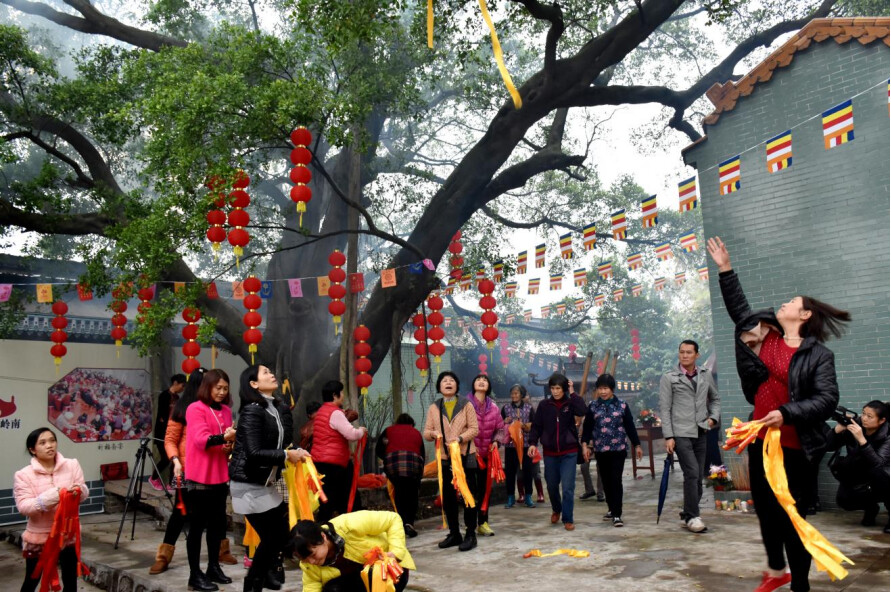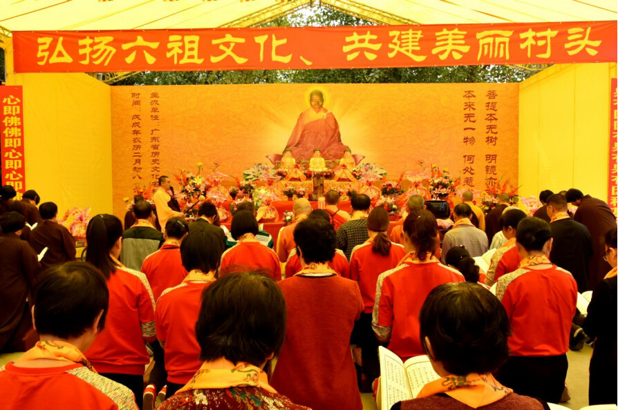 “六祖诞”民众在六祖古庙前广场祈福场面