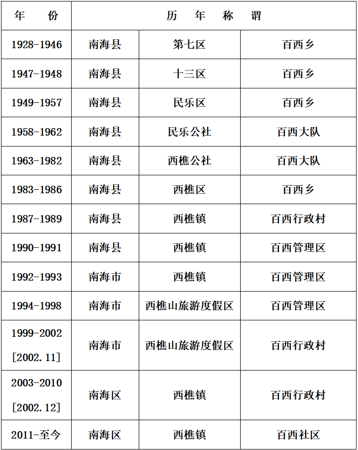 百西社区,广东省传统村落,位于有“珠江文明的灯塔”之称西樵山的西北面,辖区范围东至百东社区,南至新河社区,西至河岗社区,西北邻近三水白坭镇岗头村,北至上金瓯社区,交通便利,珠二环高速公路、广珠铁路贯通南北。辖区面积约3.5平方公里,由大地村、张家村、村头村、四约村、西岸村、五社村6个自然村组成,社区常住人口12481人(其中户籍人口4512人,流动人口7969人),党员141人;共有工商企业143家,店铺150多间,学校1所,幼儿园1所。