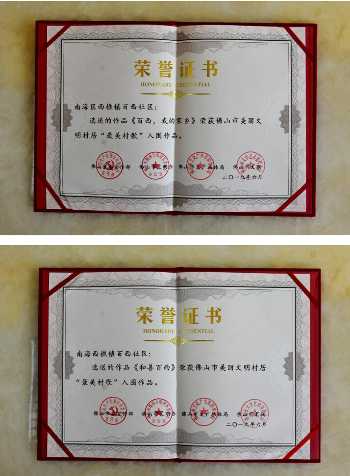 2011年10月,黎景生荣获南海区非物质文化遗产项目——区级代表性传承个人荣誉证书。