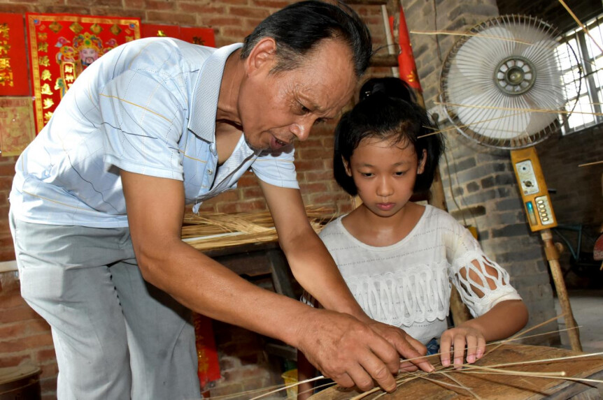 市级非遗项目代表性传承人黎景生传授雨帽竹编技艺