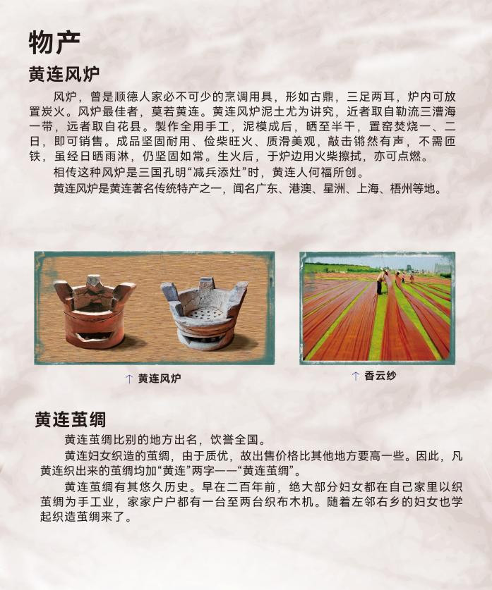 而随着机器缫丝业的兴起,家庭手工缫丝业亦继续发展,黄连家庭生丝纺织品颇负盛名。