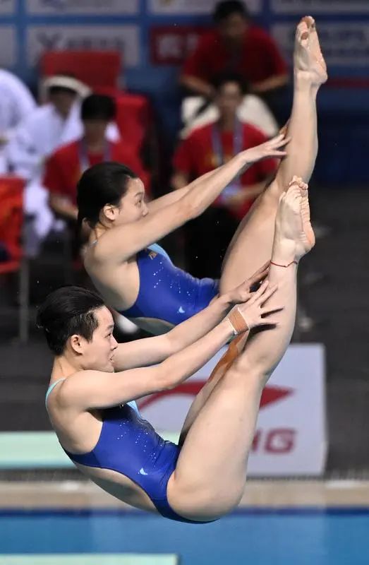 女子双人3米跳板项目共有22对选手参赛,名将陈艺文与搭档以334.95分夺金。林珊/梅颖芯组合以308.70分收获铜牌。