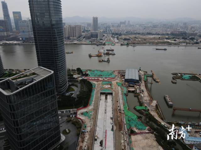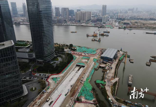 广州跨江发展的步伐仍在继续,而跨江之路更多地从江面转入水下。在广州车陂南路南延入江处,船行无痕,江面波平,距离江面十数米深的江底,在建的车陂路—新滘东路隧道4节沉管在不久前安放就位。