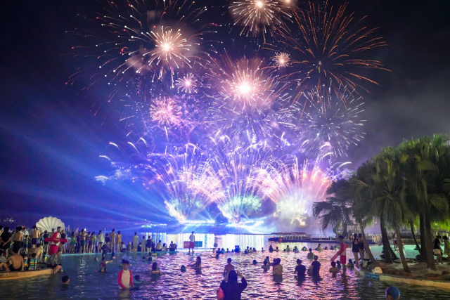 除了花火大会,园区还有森海精灵欢乐秀、海上飞人表演、欢乐巡游派对、《森林与海的传说・海灵岛传奇》主题演出等精彩活动,从早到晚精彩不停,让全家沉浸在欢乐的氛围里。