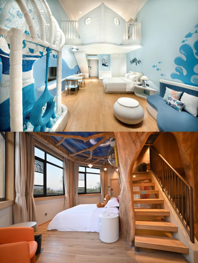 玩累了?住进度假区里的童话房吧!这里有丰富的住宿选择可满足不同亲子家庭的度假需求。比如,深受家庭喜爱的海洋主题亲子房,房间配备了波波池等趣味互动设计,让孩子们乐在其中;还有性价比高的山景/别墅温泉房、适合带宠物出行或者追求独特体验的房车、主楼区双床房、森林亲子复式房2晚连住等,每一款都能满足亲子家庭的出行需求。