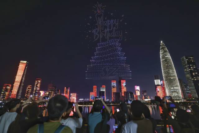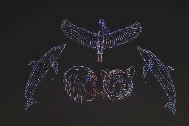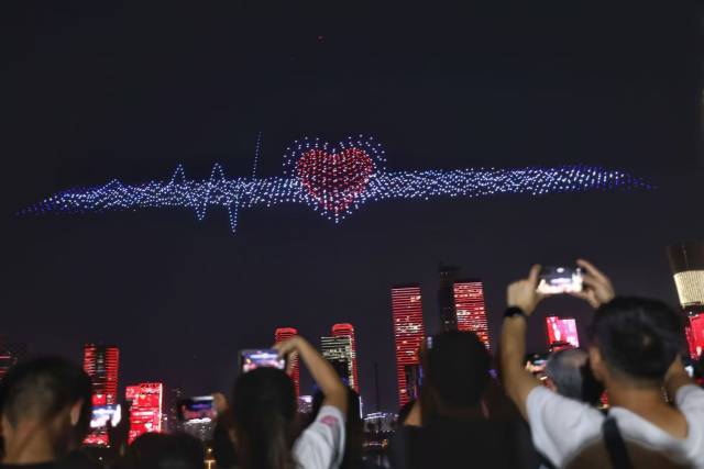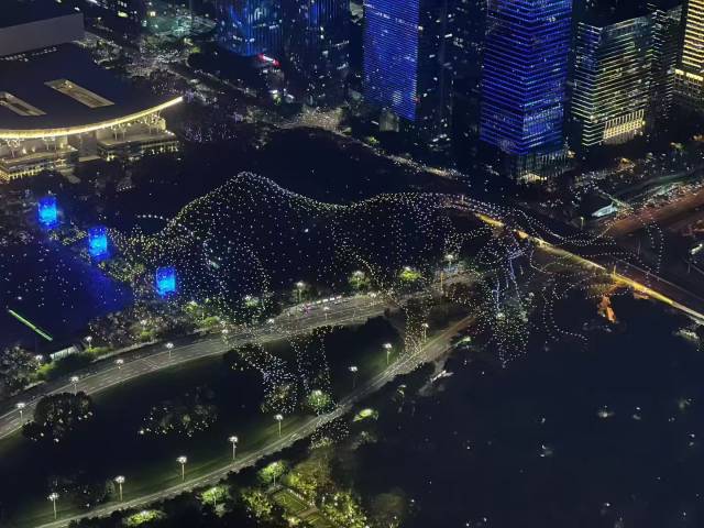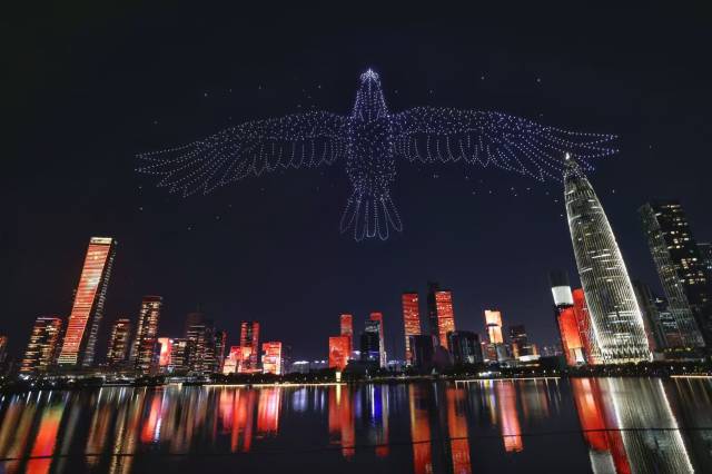1.2万架无人机腾空而起,与城市灯光秀交相辉映。