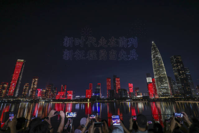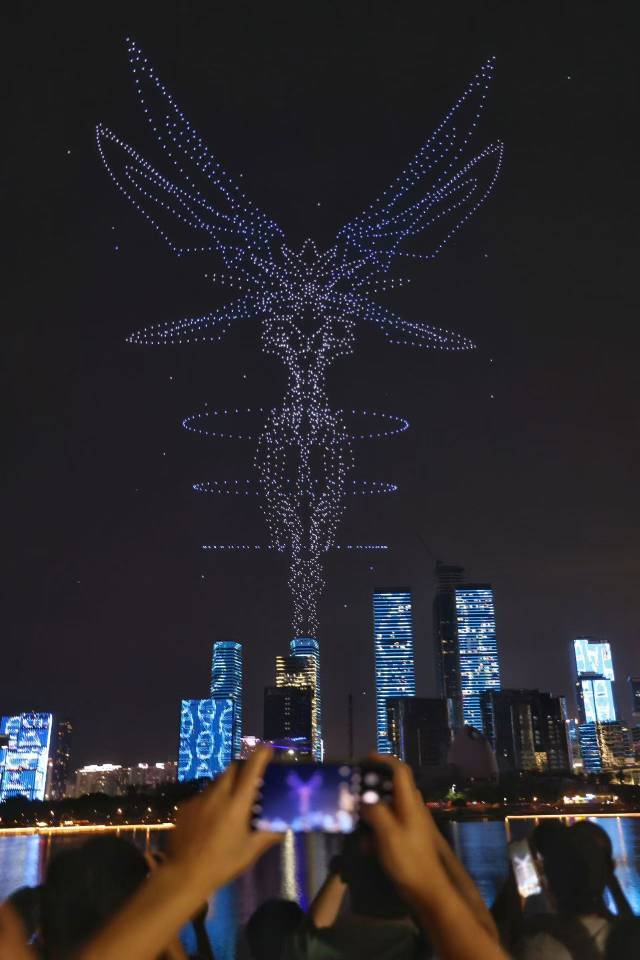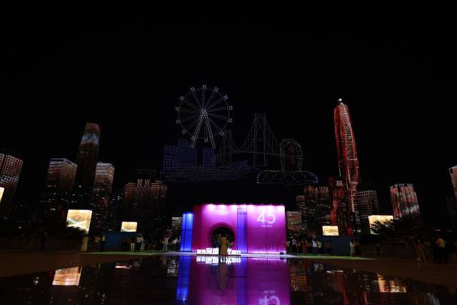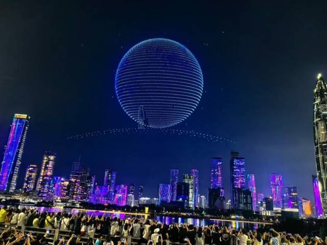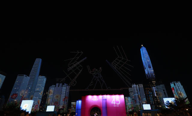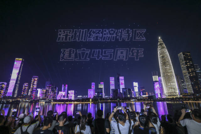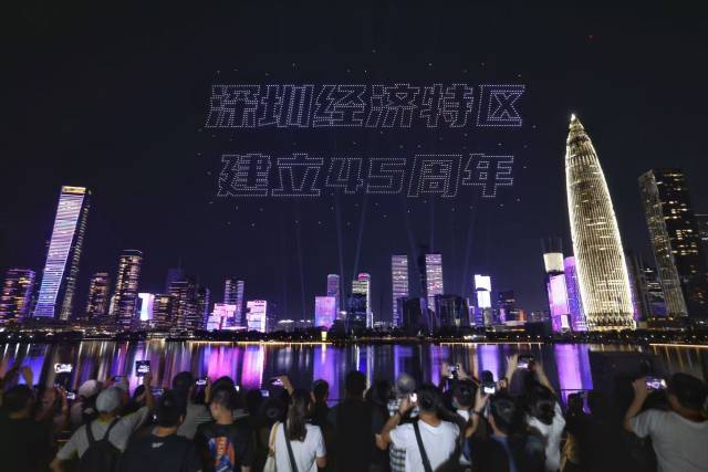 以天空为幕、以科技为笔,为市民游客献上了一场科技与艺术共舞的视觉盛宴,向世界生动讲述了深圳经济特区建立45年的发展奇迹。