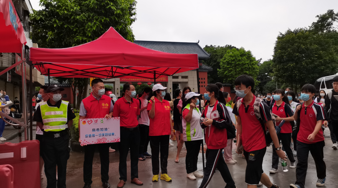 又是一年高考季,2022年6月7日,茂名市茂南区退役军人好心志愿服务队开展“爱心助考”高考志愿服务活动,在茂名市十六中北校区外设立了高考服务点,提供矿泉水、笔、口罩等物品,维持秩序,创造便利舒适的陪考环境。