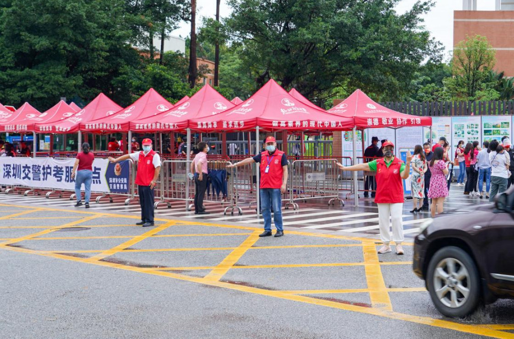 一年一度的高考于今天拉开帷幕,为营造良好高考环境,确保高考顺利进行,6月7日上午,中山市黄圃镇退役军人志愿者便前往中山二中考点开展工作。在二中考点现场,退役军人志愿者与工作人员认真维持校门外秩序,劝导考生家长不要扎堆聚集,并协助现场交警疏导车流,帮助寻找车位,有效维护考场附近交通正常通行。同时还提前在校门口搭起凉棚,准备口罩与矿泉水,为家长提供服务。多名退役军人志愿者还根据考生及家长的需求及时更新服务项目,丰富服务内容。