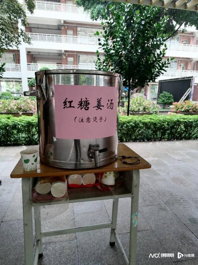 广州86中考点为考生准备了应急衣物,和暖心防感冒的红糖姜水。