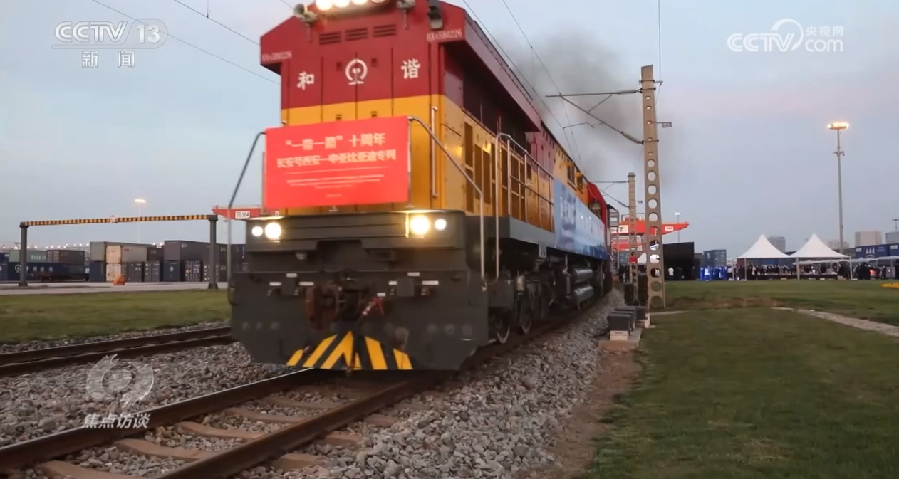 就在上个月,为纪念“一带一路”十周年特别开行的中欧班列——“一带一路”十周年长安号西安—中亚专列从西安国际港务区发车。2013年11月,首列中欧班列长安号正是由这里出发,开往哈萨克斯坦。从这里启程的长安号,从最初的年开行46列发展到去年的4600多列,十年增长了100倍。十年来,长安号累计开行超过1.6万列。其中,中亚五国开行量达到4250列,为促进中国同中亚互联互通与经贸合作发挥了重要作用。